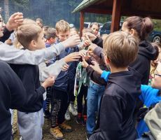 - na zakończenie działań zrealizowany został piknik – w czasie pikniku odbyło się mnóstwo działań edukacyjno-integracyjnych. Przewodnicy zrealizowali przejście ścieżką wraz z grą terenową, czas umilały nam animacje m.in. artystyczne z wykorzystaniem darów lasu, sportowe, sprawnościowe np. strzelanie z łuku, odbyły się mini wykłady ekologiczne, liczne konkursy wspólne świętowanie przy ognisku. Wszystko odbyło się w rodzinnej, przemiłej atmosferze.